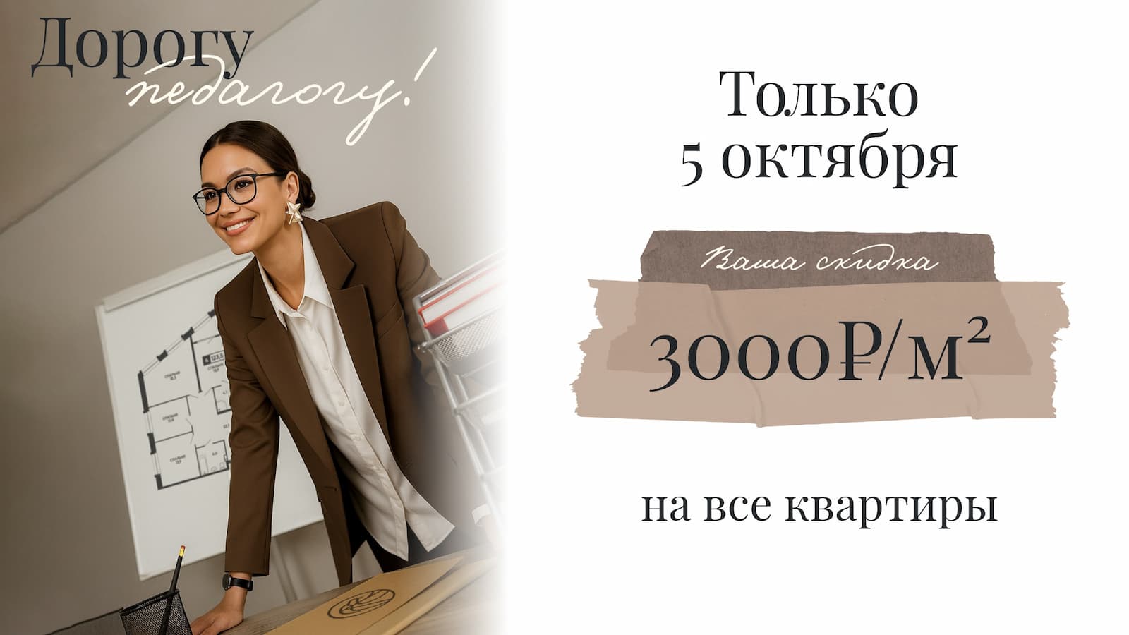Дорогу педагогу! Скидка 3000 ₽/м² на все квартиры в честь Дня учителя