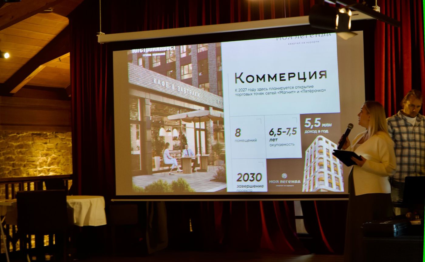 Руководитель отдела продаж на КМВ Антонина Андоренко подробно рассказала гостям о развитии коммерческой инфраструктуры в Кисловодске. Она представила три крупных проекта компании: квартал на курорте «Моя Легенда», дом у озера «Моне» и клубный квартал «Печорин». Участники узнали, какие возможности открываются для бизнеса в этих локациях, где сосредоточены наиболее перспективные коммерческие площади и каким образом их можно использовать для развития собственных проектов.